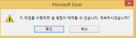 - 병합셀의 일부를 삭제하면 경고 메시지 발생