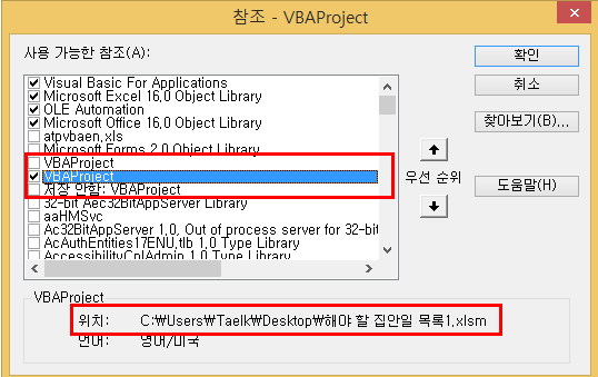 -> 찾아보기 버튼을 이용하여 현재 열려있지 않는 통합문서를 선택가능