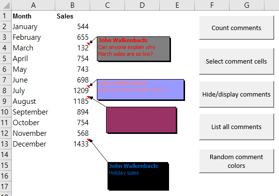 MsgBox "The active worksheet contains " & CommentCount & " comments.", vbInformation